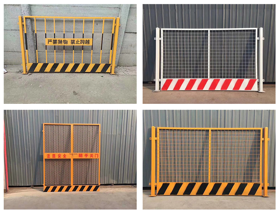 网片式基坑护栏采用6*6公分钢丝网和2*3公分的方管边框焊接而成,下部焊接20公分高挡脚板,喷涂警示斑马线。立柱采用5*5公分方管,与护栏片用螺栓连接,立柱底部焊接可用膨胀螺丝固定的底盘。