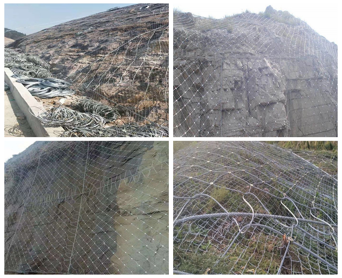 采用这种两种金属丝网搭配使用的结构,是因为有的山体有很多小块碎石,一旦发生边坡塌方,大块石头虽然被主动防护网控制,但小块碎石无法控制,会导致滚落到高速公路上妨碍交通,所以在重要交通道路的环境下安装GPS1型主动边坡防护网可以限制局部或少量落石运动范围,尤其在有小块落石或土质边坡时选用更为合适。