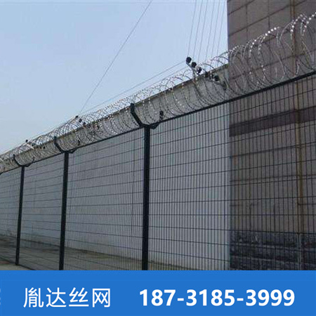 监狱护栏网又称作"Y型安全防御护网"和机场护栏网通用,是由V型支架立柱,加强型焊接片网,安全防盗连接件和热镀锌刀片刺笼组成强度和安全防御性级别很高。近年来,被广泛应用在监狱,军事基地等高安全场所。注:如果在监狱护栏网顶部加装刀片刺丝、刀片刺绳后又很好的增强了安全防护性能。采用电镀、热镀、喷塑、浸塑等防腐形式,具有很好的抗老化、抗晒、耐候等特点。其产品造型美观、花色多样,既起到围栏作用,又起到美化作用。由于具有安全性高、防攀爬能力好,网片连接方式采用特制SBS紧扣件,有效防止人为的破坏性拆卸,横向四道折弯加强筋,使网面强度显著增加。